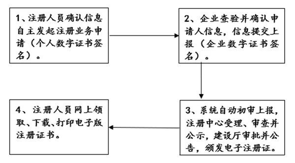 全省建设行业二级执业注册人员注册实行省级一级审批,取消市(州)级二级注册初审,由甘肃省建设厅执业资格注册中心具体受理、审核和公示,报省住房和城乡建设厅审批并公告。注册管理基本流程为: